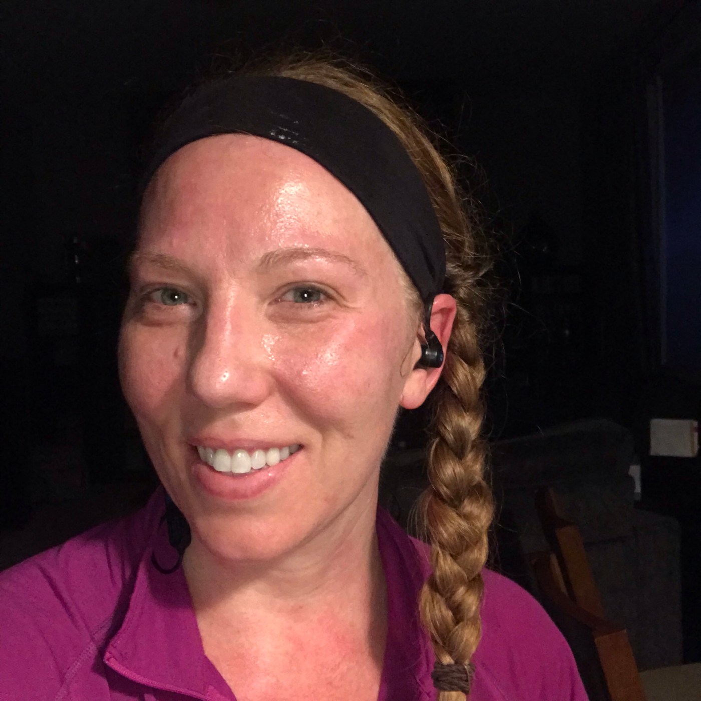 Here I am. Sweaty face. Hair in last night’s braids. Headband with paint from who-knows-what project. Fresh off my morning run.